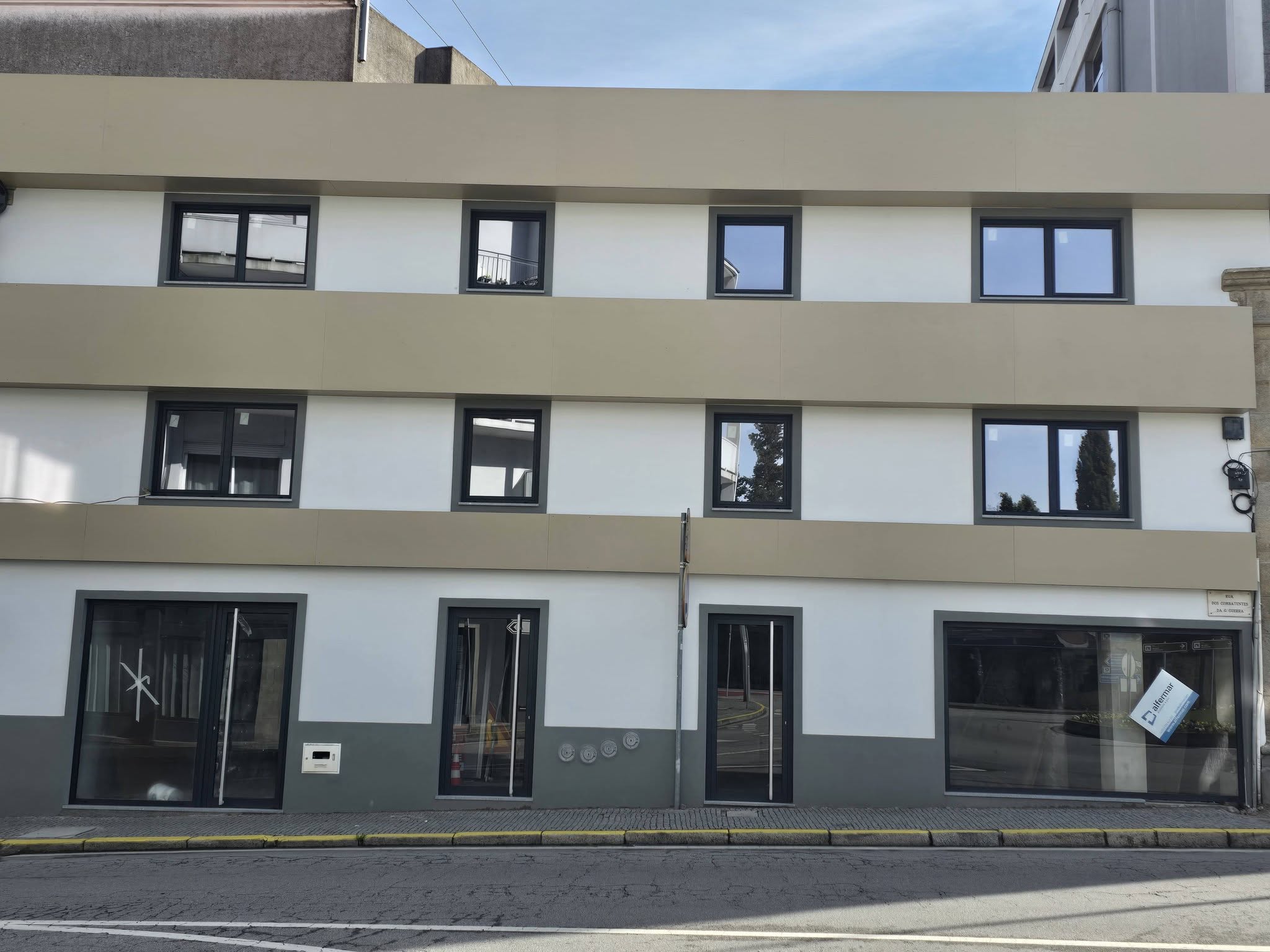 Alumínio lacado 7016 texturado, na série com corte térmico Domo 72 RT, com vidros duplos baixo emissivo SGG Climalit Planitherm 4S, garantindo maior eficiência térmica, conforto e qualidade.